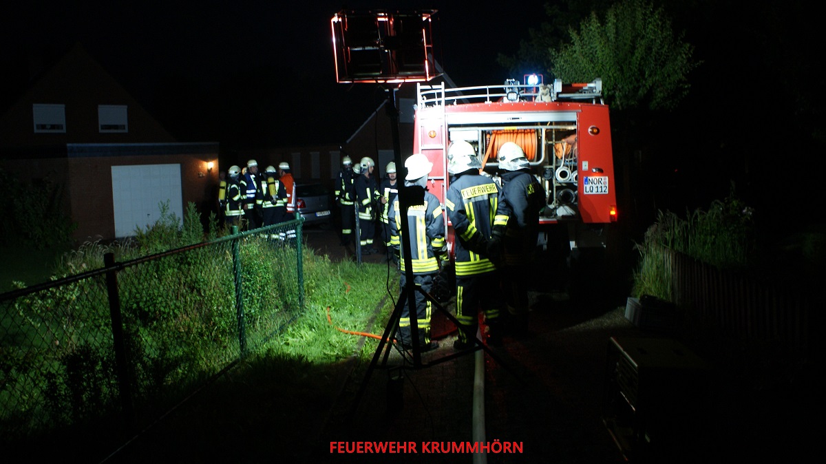 In der Nacht zu Mittwoch wurden die Feuerwehren Pewsum - Woltzeten und Loquard - Rysum gegen halb vier mit dem Stichwort "Garagenbrand" in die Brunger Straße in Loquard alarmiert. Vor Ort brannte ein Fahrzeug vor einer Garage. Ein Trupp unter schwerem Atemschutz löschte den Brand mittels Schnellangriff ab. Der Brand war schnell unter Kontrolle. Die ebenfalls angerückte Feuerwehr Pewsum - Woltzeten brauchte nicht mehr tätig werden und konnte wieder abrücken. Durch das Feuer wurde der Motorraum des PKWs sehr in Mitleidenschaft gezogen. Neben der Feuerwehr war auch die Polizei an der Einsatzstelle.