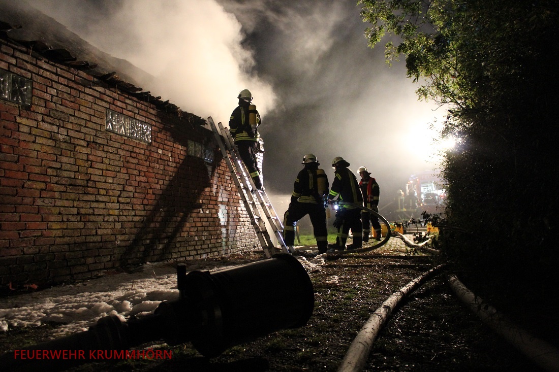 Ein Anrufer meldete Dienstagnacht einen Brand eines landwirtschaftlichen Gebäudes in der Meestereistraße in Manslagt. Daraufhin alarmierte die Leitstelle Ostfriesland gegen 03:40 Uhr mehrere Feuerwehren sowie den Einsatzleitwagen der Gemeinde Krummhörn.