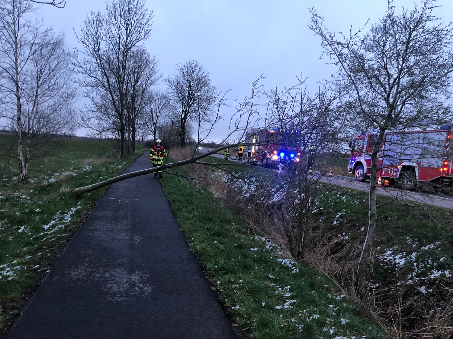 Ein kleiner Baum hatte sich über den dortigen Radweg gelegt und versperrte diesen. Die eingesetzte Feuerwehr Krummhörn-Mitte konnte die Gefahr mit Muskelkraft binnen kürzester Zeit beseitigen.