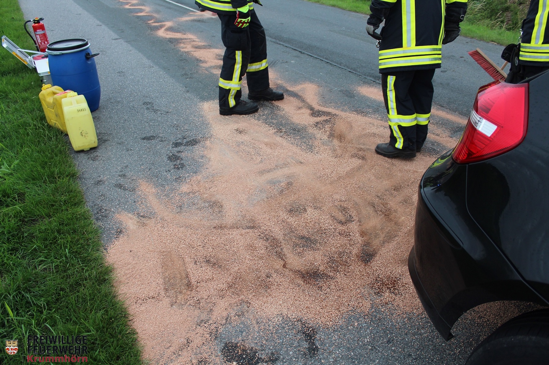 Da Betriebsstoffe aus dem BMW ausliefen, ist um 06:27 Uhr die Ölschadensgruppe der Ortsfeuerwehr Krummhörn-Nord alarmiert worden. Die Einsatzkräfte streuten die ausgelaufenen Betriebsstoffe ab, stellten den Brandschutz sicher und unterstützten den Abschleppdienst bei den Bergungsarbeiten der zwei Unfallfahrzeuge.