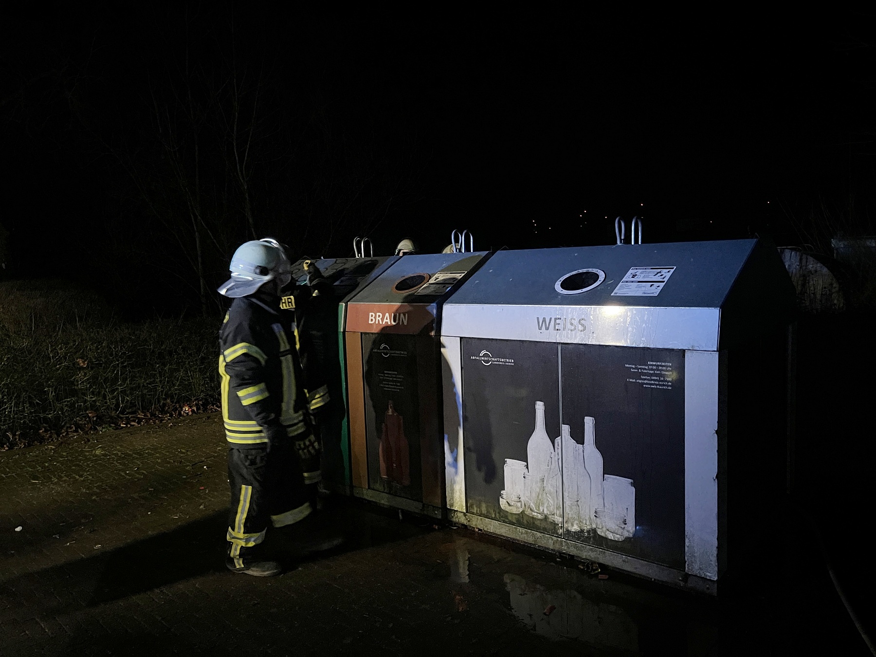 Ein Schwelbrand in einem Altglascontainer in der Ringstraße in Uttum erforderte den Einsatz der Feuerwehr.