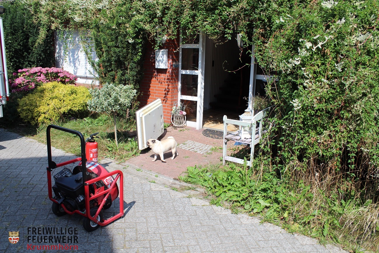 In einem Wohngebäude in der Schwitterslohne in Upleward hat am Samstagnachmittag ein Fernseher gebrannt. Die Anwohnerin des Gebäudes hatte beim Fernsehen zuerst ein knisterndes Geräusch wahrgenommen. Kurzer Zeit später schlugen bereits Flammen aus dem 10 Jahre alten Fernsehgerät. Die Leitstelle Ostfriesland alarmierte daraufhin um 14:24 Uhr die Feuerwehren Krummhörn-West und Pewsum-Woltzeten. Die Anwohnerin trennte das Gerät umgehend von der Stromversorgung. Ein Feuerwehrmann, der gerade in der Nähe war, löschte das Gerät mit einem Feuerlöscher und verbrachte es nach draußen. Durch die Feuerwehr ist das Gebäude im Anschluss mit einem Überdrucklüfter belüftet worden. Zur Kontrolle der Wohnung kam eine Wärmebildkamera zum Einsatz. Verletzt wurde glücklicherweise niemand. Im Einsatz waren rund 40 Einsatzkräfte der Feuerwehr. |