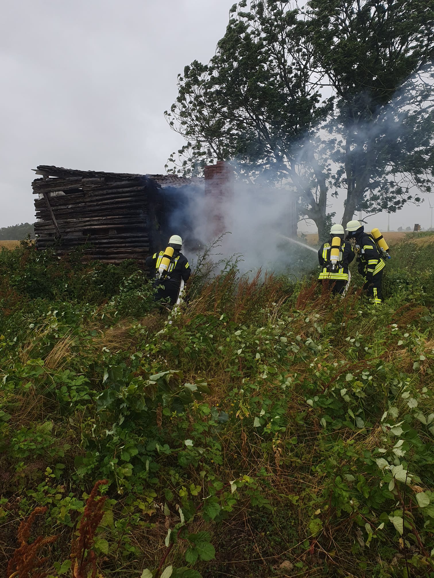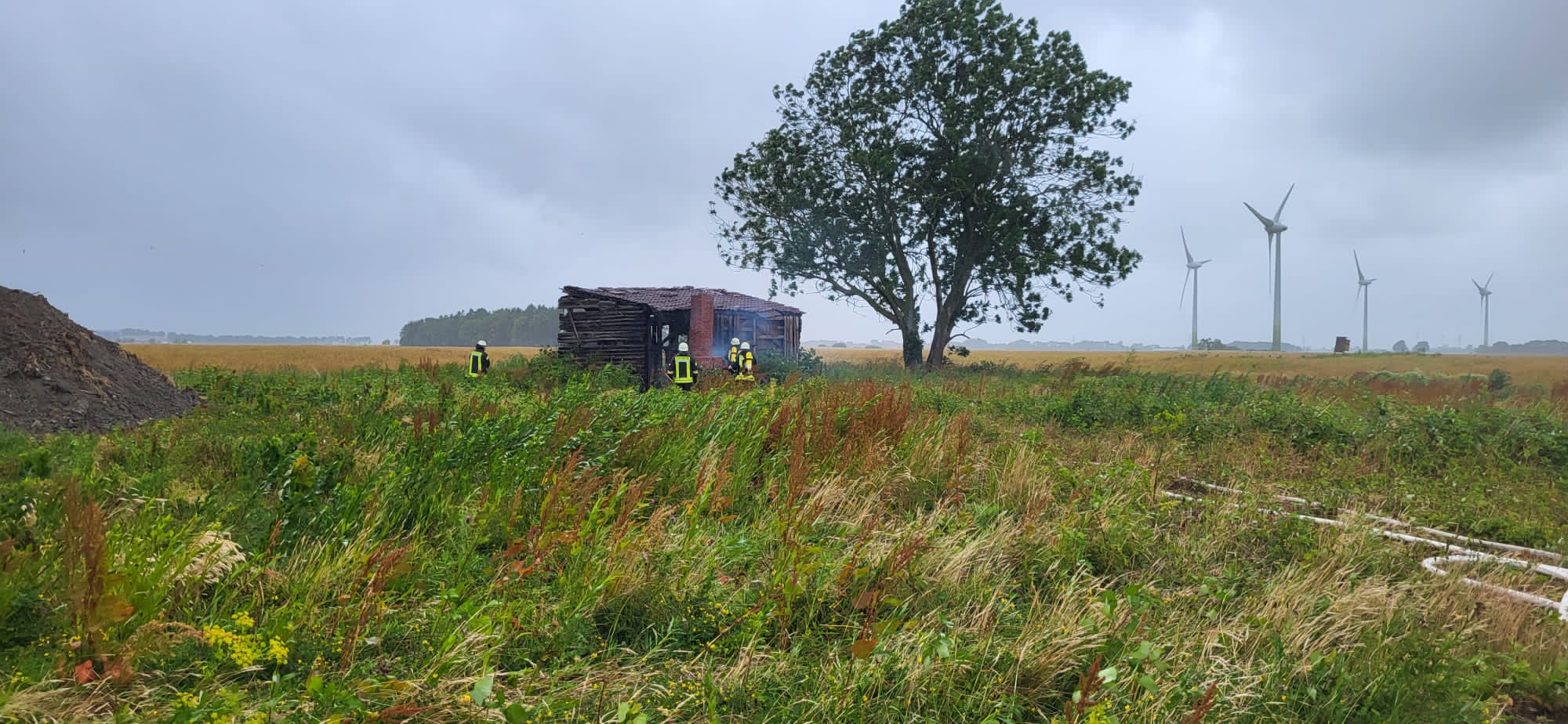 Nachdem die Ortsfeuerwehr Krummhörn-Mitte nach der Abarbeitung eines Sturmschadens wieder zurück im Feuerwehrhaus war, erfolgte gegen 16:50 Uhr über Funk die Alarmierung zu einem Einsatz in der Pewsumer Ubbo-Emmius-Straße. Dort stand ein Teil eines alleinstehenden Holzgebäudes in Brand. Trupps unter Atemschutz konnten das Feuer zügig löschen. Neben der Feuerwehr Krummhörn-Mitte war auch die Polizei vor Ort im Einsatz.